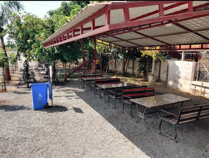 The on-site restaurant provides a variety of culinary options, including Punjabi and Kathiyawadi cuisines. Guests can enjoy their meals in an outdoor seating area, which features a playground for children, making it a family-friendly environment