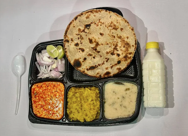 Includes 1 Bhakri, 1 Gujarati Sabji, Kadhi, Khichdi, Buttermilk, Salad, and Chutney (Subject to Availability).