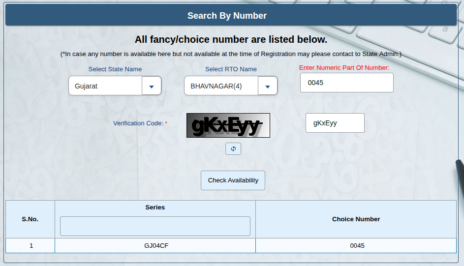 How check Fancy/Choice Number in Bhavnagar RTO